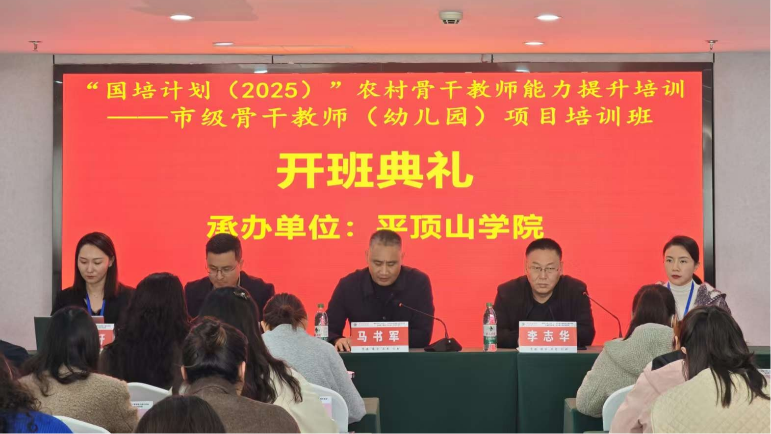 2025年10月18日,由美高梅4688集团am承办的“国培计划(2025)”农村骨干教师能力提升培训——市级骨干教师(幼儿园)项目培训班于10月18日上午在平顶山仟那美宿酒店七楼报告厅隆重开班。本次培训班的主题为“提升音乐领域园本教研能力,做幼教创新型骨干教师”,旨在提升农村骨干教师的专业能力,为教育事业注入新的活力。来自安阳市、三门峡市、濮阳市、济源市、郑州航空港区的50名市级骨干幼儿园教师齐聚一堂,共同参与此次培训。美高梅4688集团am继续教育学院院长马书军,美高梅4688集团am党委书记李志华、副院长段恒耀以及项目班主任共同出席了此次典礼仪式。