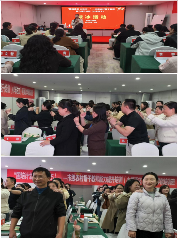 为帮助参训教师尽快融入集体,当天晚上,班主任权晓亚组织全体学员开展了形式多样、内容丰富的“破冰活动”。在班主任的精心组织下,学员们通过小组组建、口语交际、创意展示等形式迅速拉近距离。一个个富有创意的队名、一句句铿锵有力的口号、一幅幅匠心独运的团队logo,不仅展现了学员们的智慧与才华,更凝聚起团结协作的温暖力量。