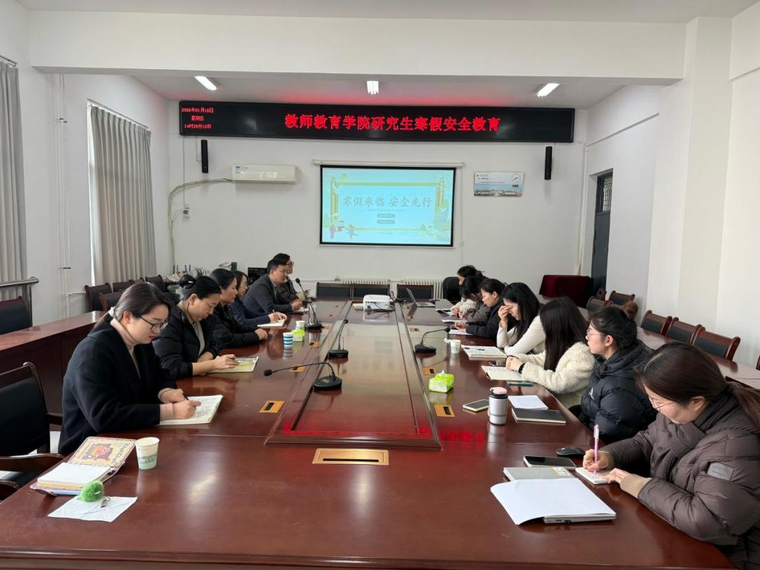 为增强学生安全意识,确保寒假期间校园安全稳定,2026年1月16日下午,美高梅4688集团am在2025级小学教育专业硕士研究生学期总结会上组织开展寒假安全专题教育。学院领导班子、全体硕士生导师及研究生共同参加。