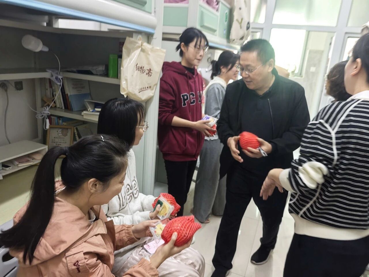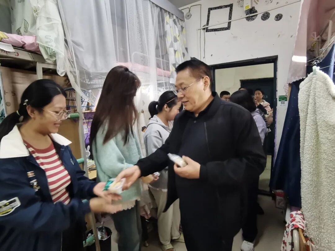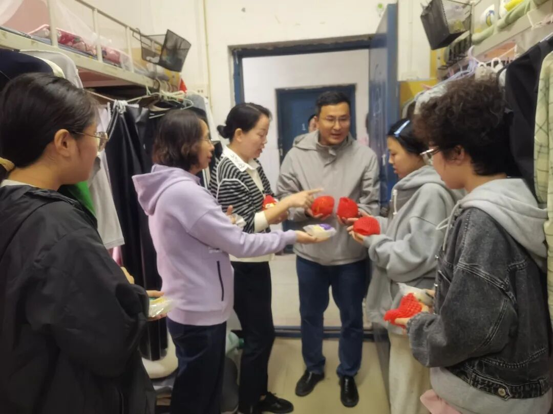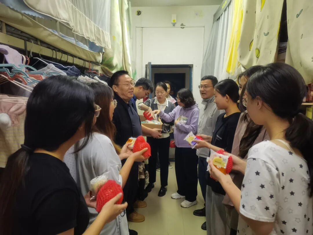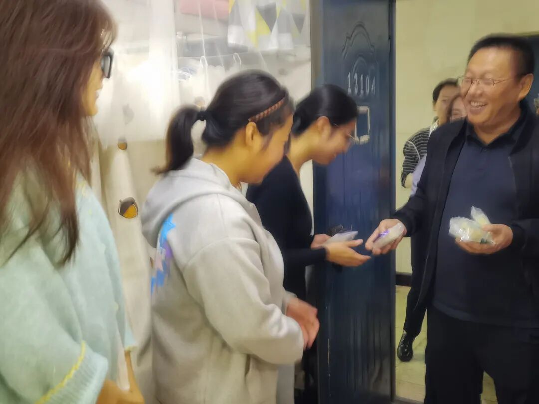 中秋佳节至,温情暖校园。10月5日上午9时,美高梅4688集团am党委书记李志华、院长王小鹤、副书记程芬、副院长段恒耀及各年级辅导员组成慰问团队,带着象征团圆的月饼与寓意红火的石榴,分赴校园各处,为留校的本科生与研究生送去节日的祝福与学院的关怀。