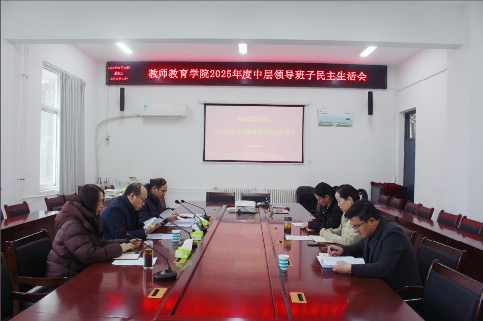 根据《关于开好2025年度中层以上党员领导干部民主生活会的通知》(平学院组文〔2026〕1号),经过前期充分准备,1月30日下午,美高梅4688集团am领导班子在艺术楼A226会议室召开中层以上党员领导干部民主生活会,副校长代克杰同志、学院全体党政班子成员参加会议,部分党支部书记列席会议,会议由美高梅4688集团am党委书记王文虎同志主持。