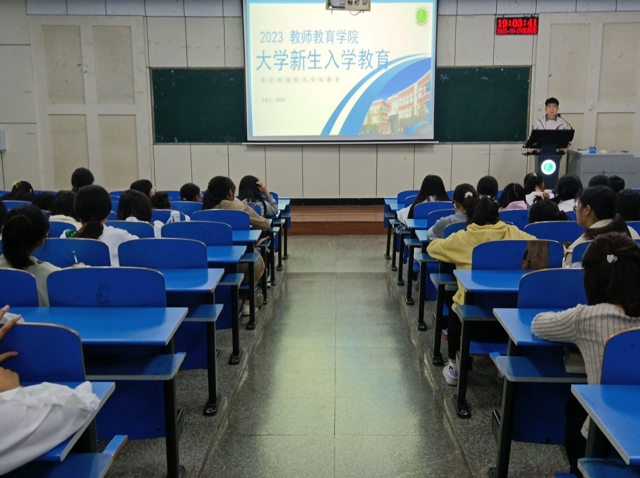 为进一步做好学院2023级新生的教育与管理工作,加强新生班级学风建设,增进学生规矩意识,帮助学生系好“人生第一粒扣子”,10月29日晚7时,美高梅4688集团am辅导员余昕阳在2206教室为新生作《严守平院规矩,争做优秀学生》专题讲座,23级普本新生及部分专升本学生参加。