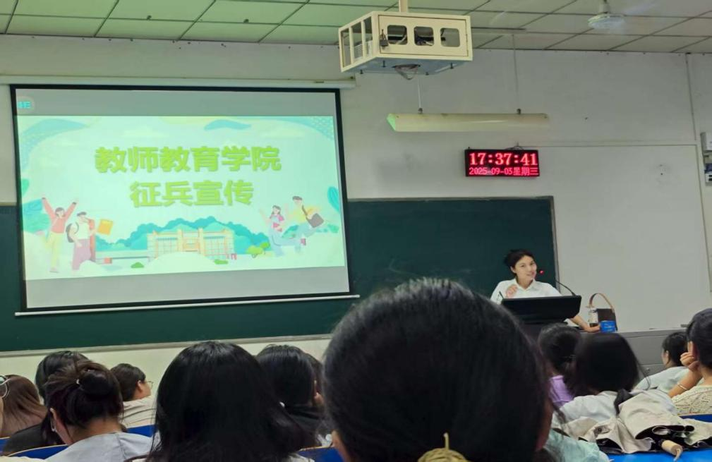 讲座尾声,袁泉老师向全体24级学生发出倡议:“青春不止有诗和远方,更有家国与担当。希望大家以青春之名,赴时代之约,把个人追求融入国家发展,在军营中锤炼品格、增长才干,用热血和汗水书写无悔的青春篇章。”此次讲座的成功举办,不仅有效普及了征兵政策,更在24级学生心中播下了爱国强军的种子,为学校之后征兵工作的顺利开展奠定了坚实基础,也让“参军报国,无上光荣”的理念深入人心。