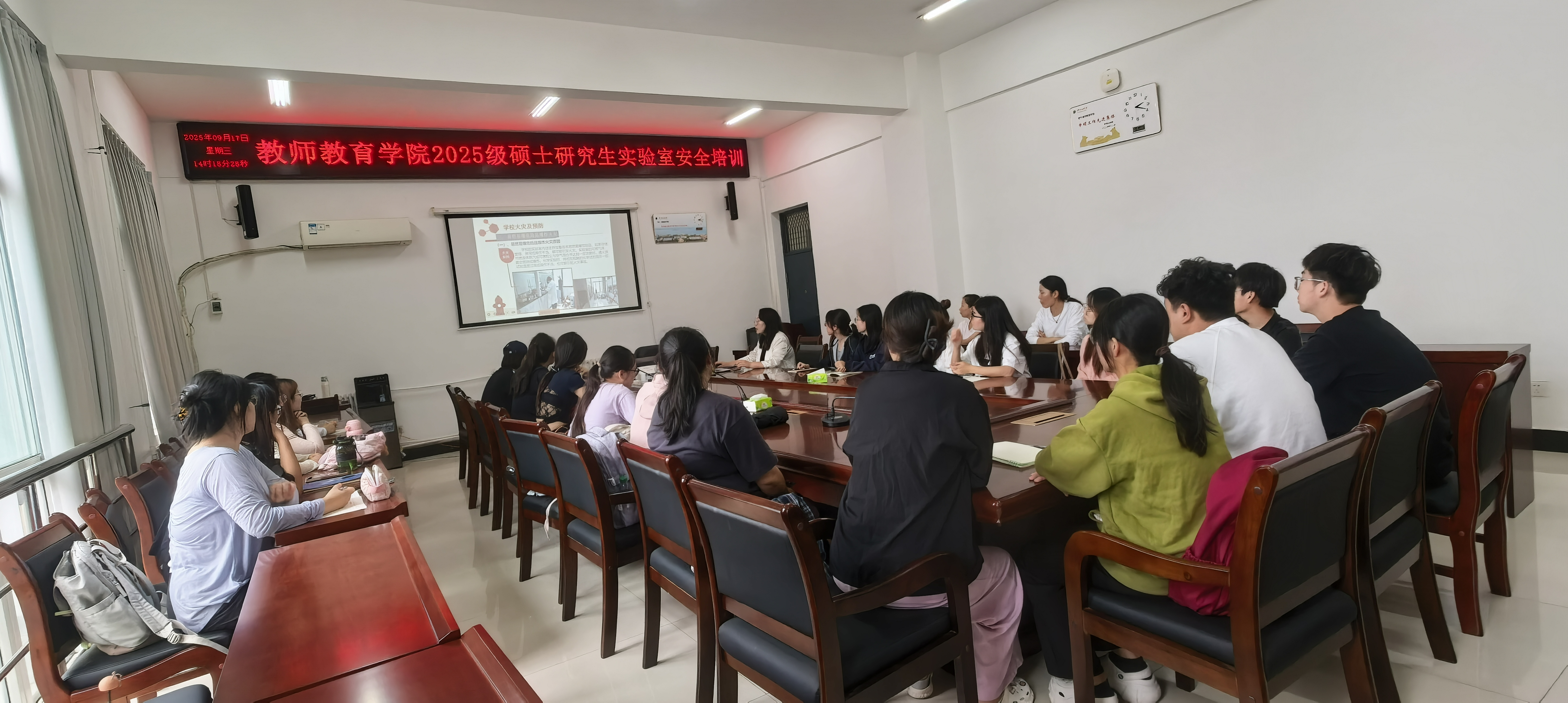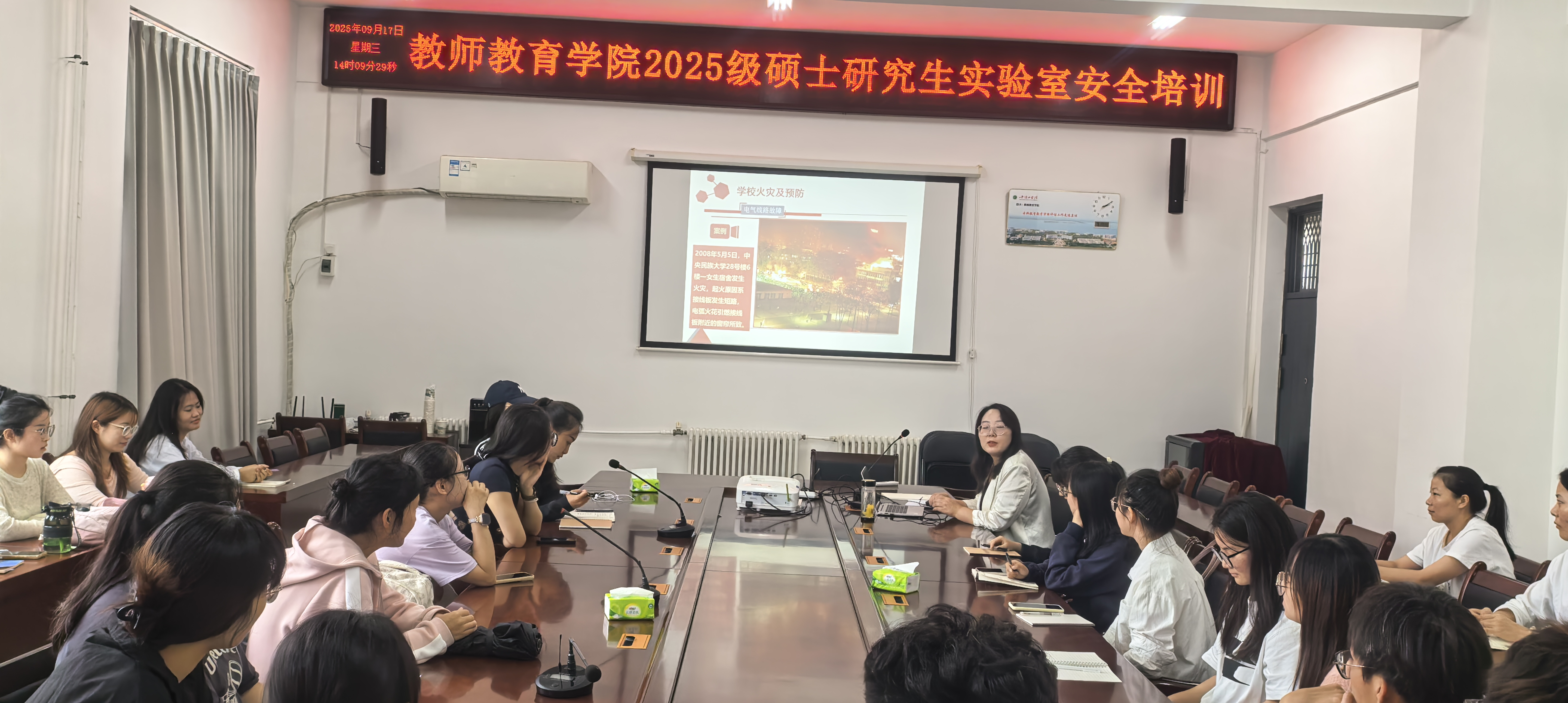 2025年9月17日14点,美高梅4688集团am王秋歌副院长在艺术楼A226办公室就实验室安全教育知识及相关事宜为全体2025级研究生作专题培训。