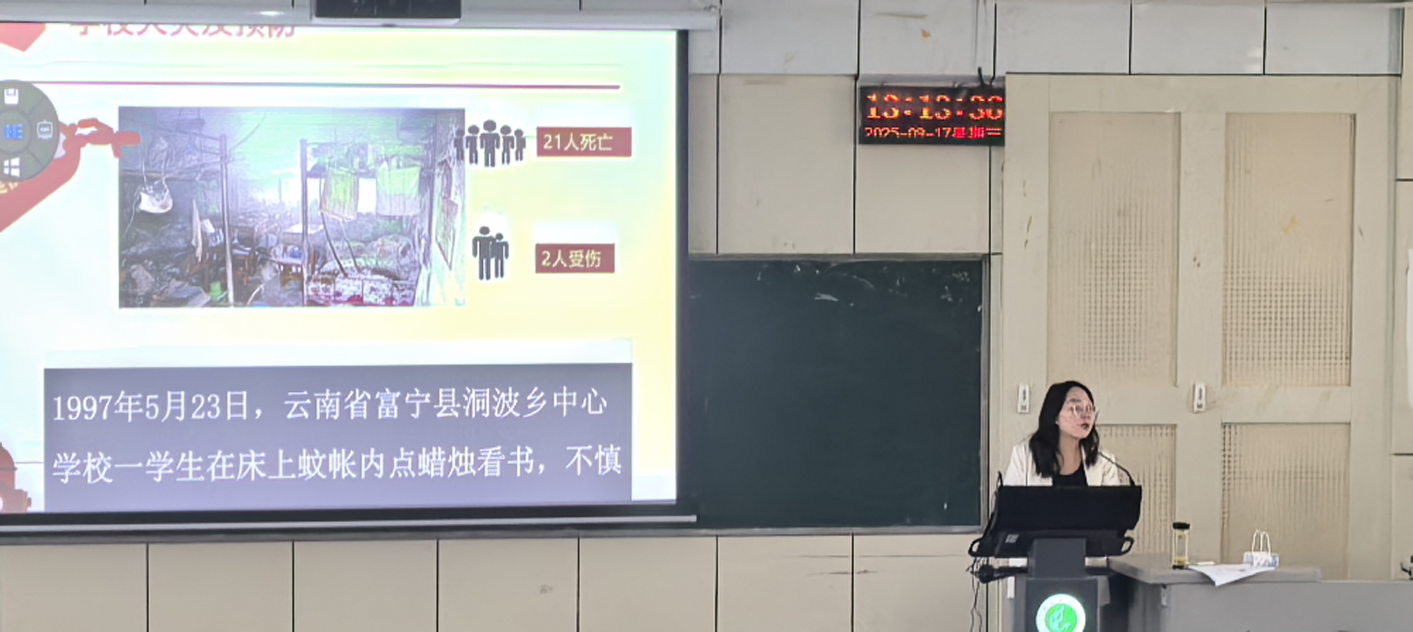 2025年9月17日13:00,美高梅4688集团am王秋歌副院长在2号教学楼2206多媒体教室就实验室安全教育知识及相关事宜为全体2025级本科生作专题培训。