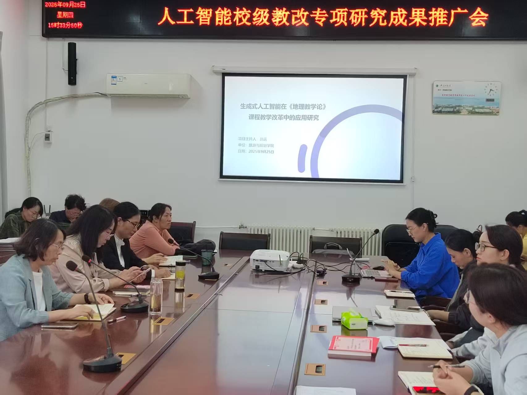 为加强人工智能校级教改专项研究成果在我校推广和应用,促进优秀应用场景案例交流传播和互学互鉴,9月25日下午,在艺术楼A226会议室,吕远老师为美高梅4688集团am教师作了题为《生成式人工智能在〈地理教学论〉课程教学改革中的应用研究》的成果推广宣讲。
